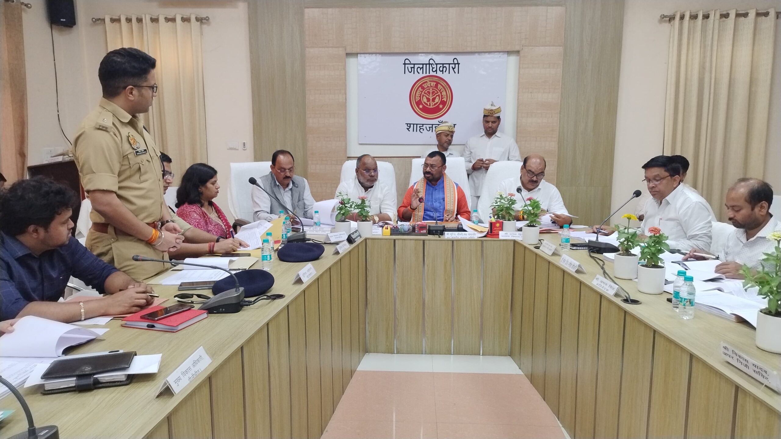 शाहजहांपुर/ दिनांक 25.03.2025/ मंगलवार को उत्तर प्रदेश विधान परिषद की संसदीय अध्ययन समिति मा0 सभापति सुरेंद्र चौधरी की अध्यक्षता में विधान परिषद सदस्य उमेश द्विवेदी, हंसराज विश्वकर्मा एवं डॉ0 सुधीर कुमार गुप्ता की उपस्थिति में कलेक्ट्रेट सभागार में जनपद शाहजहांपुर एवं पीलीभीत के अधिकारियों के साथ बैठक आयोजित की गई। बैठक में सभापति में विभागवार समीक्षा करते हुए सभी अधिकारियों को निर्देशित किया कि जनप्रतिनिधियों द्वारा अधिकारियों को किसी भी कार्य के लिए दिए गए प्रस्ताव एवं आवेदनों पर की गई कार्यवाही से उन्हें लिखित में अवश्य अवगत कराया जाए। उन्होंने कहा कि सभी लोग जनमानस के लिए अच्छे से कार्य करें। उन्होंने कहा कि किसी भी विभाग में यदि बिचोलिए सक्रिय है तो उन्हें चिन्हित कर कार्रवाई करें। उन्होने कहा कि दी गई व्यवस्था के तहत अमन चयन शांति बनाए रखें। उन्होंने कहा कि प्रत्येक विभाग प्रस्ताव एवं प्राप्त आवेदनों का रजिस्टर बनाएगा तथा की गई कार्रवाई से अवगत कराएगा। माननीय सभापति ने निर्देशित किया कि किसी व्यक्ति द्वारा न्यायालय से स्टे लेने के बाद विपक्षी दबंग द्वारा स्टे का उल्लंघन किया जाता है तो तत्काल उसे पर कड़ी कार्रवाई की जाए। उन्होंने कहा सभी अधिकारी इस विषय में संवेदनशील होकर गंभीरता से कार्य करें। बैठक में अधिकारियों को समिति द्वारा दिए गए पत्रों के क्रम में सभापति ने निर्देशित किया कि दिए गए पत्रों का समय से जवाब दिया जाए। उन्होंने कहा जो भी त्रुटियां पाई जा रही हैं उसका संबंधित अधिकारी द्वारा निस्तारित कर लखनऊ में समिति को अवगत कराया गया। बैठक में मनरेगा के कार्यों की समीक्षा करते हुए सभापति ने डीसी मनरेगा को निर्देशित किया कि जॉब कार्डों की जांच कर यह सुनिश्चित किया जाए जिस व्यक्ति कार्ड बना है वही कार्य करें।