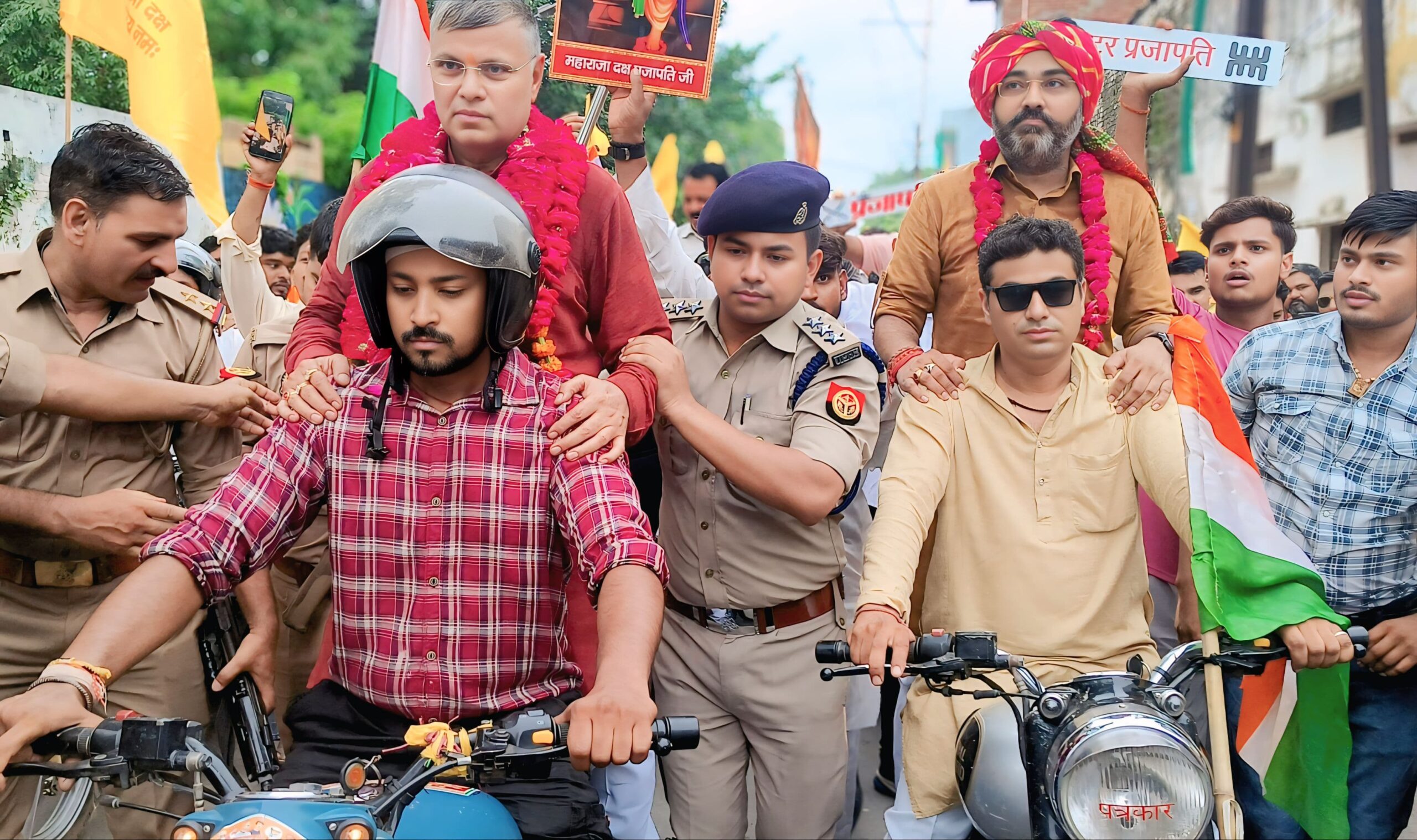 आगरा। उत्तर प्रदेश के होमगार्ड्स एवं नागरिक सुरक्षा राज्य मंत्री (स्वतंत्र प्रभार) धर्मवीर प्रजापति की अगवाई में रविवार को प्रात: ०९ बजे ब्रह्मा जी के मानस पुत्र महाराजा गुरु दक्ष प्रजापति जी की जयंती समारोह के उपलक्ष्य में दक्ष प्रजापति चौक से विशाल बाइक रैली निकाली गयी। बाइक रैली प्रजापति चौक से पंचकुइया होते हुए सूरसदन तक निकाली गई। बाईक रैली का शुभारंभ मंत्री धर्मवीर प्रजापति, जिलाध्यक्ष प्रशांत पौनिया ने हरी झंडी दिखाकर किया। साथ ही रैली में स्वयं मंत्री धर्मवीर प्रजापति ने बाईक चलाकर युवाओं का जोश बढाने का कार्य किया।कार्यक्रम में 1500 से अधिक युवाओं ने अपने-अपने बाईकों पर सवार होकर बढ़ चढ़ कर हिस्सा लिया।मंत्री धर्मवीर प्रजापति ने अपने संबोधन मेें युवाओं के जोश को सलाम करते हुए कहा कि हमारे देश में 60 प्रतिशत से अधिक आबादी युवाओं की है और युवाओं को हर कार्यक्रम में सम्मिलित होना चाहिए।उन्होंने कहा कि देश की प्रगति में युवाओं का बहुत बड़ा योगदान होता है।देश की यही आबादी देश को विकास के पद पर आगे बढ़ाने में अपना अमूल्य सहयोग प्रदान करती हैं। हमारे देश के आर्थिक तरक्की से लेकर सीमाओं की सुरक्षा तक युवाओं के कंधों पर है।प्रधानमंत्री नरेंद्र मोदी एवं प्रदेश के यशस्वी मुख्यमंत्री योगी आदित्यनाथ के नेतृत्व में क्रम सा देश एवं प्रदेश लगातार तरक्की कर रहा है।