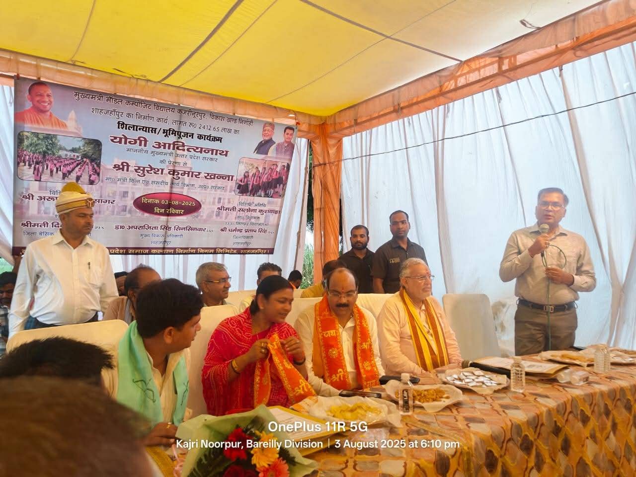 कार्यक्रम में अरुण कुमार सागर,सांसद शाहजहांपुर,श्रीमती सलोना कुशवाहा,विधायक तिलहर कार्यक्रम के बतौर विशिष्ट अतिथि,भानुप्रताप ब्लॉक प्रमुख निगोही,अजय प्रताप यादव, पूर्व अध्यक्ष जिला पंचायत की गरिमामयी उपस्थिति में संपन्न किया गया,,कार्यक्रम में धर्मेंद्र प्रताप सिंह जिलाधिकारी शाहजहांपुर डॉ० अपराजिता सिंह सिनसिनवार मुख्य विकास अधिकारी जनपद शाहजहांपुर दिव्या गुप्ता जिला बेसिक शिक्षा अधिकारी जनपद शाहजहांपुर एवं अन्य समस्त अधिकारी कर्मचारी का उपस्थित रहे,,,मुख्यमंत्री मॉडल कंपोजिट विद्यालय को कार्यदायी संस्था उत्तर प्रदेश समाज कल्याण निगम लिमिटेड के द्वारा निर्माण कराया जाएगा।