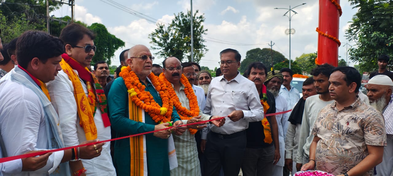 शाहजहांपुर 16 अगस्त। जिला पंचायत द्वारा निर्मित, हथौड़ा चौराहा, हथौड़ा स्टेडियम मार्ग पर परमवीर चक्र विजेता नायक जदुनाथ सिंह स्मृति द्वार का श्री सुरेश कुमार खन्ना माननीय वित्त एवं संसदीय कार्य मंत्री उत्तर प्रदेश सरकार द्वारा फीता काटकर उद्घाटन किया गया। इस अवसर पर सांसद अरुण कुमार सागर, जिलाधिकारी धर्मेंद्र प्रताप सिंह, पूर्व जिला पंचायत अध्यक्ष वीरेंद्र पाल यादव, अजय प्रताप यादव आदि मौजूद रहे। मंत्री जी ने ग्राम जानकी नगर के लोगों को आवा गमन हेतु मार्ग की समस्या दृष्टिगत मौके पर जाकर स्थिति का जायजा लिया। उन्होंने उप जिलाधिकारी सदर को मार्ग की समस्या का समाधान कराने के निर्देश दिए।