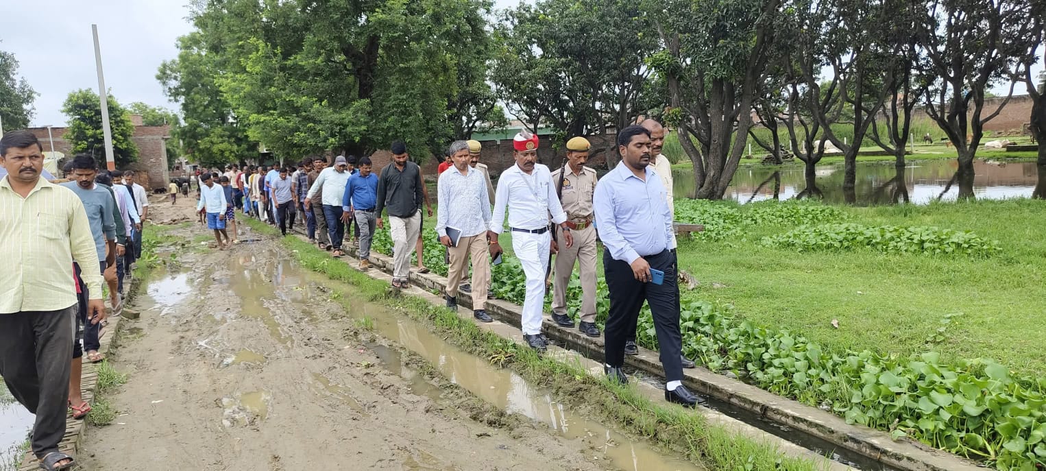 अपर जिलाधिकारी वित्त एवं राजस्व ने गांव दौलतपुर में जलभराव की शिकायत पर किया स्थलीय निरीक्षण।