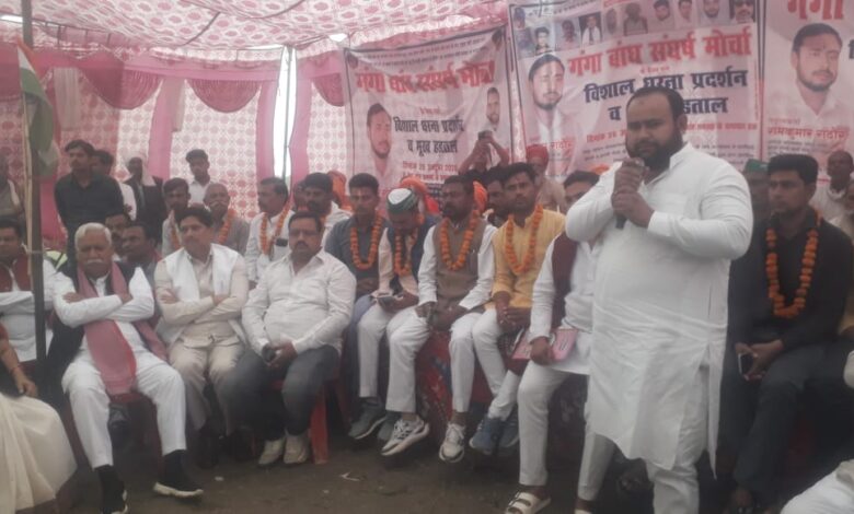 शमशाबाद फर्रुखाबाद। गंगा बांध संघर्ष मोर्चा के नेतृत्व करता रामकुमार राठौर सदस्य जिला पंचायत कलान के साथ 21 लोग बैठे भूख हड़ताल पर । ढाई घाट पर तट बांध को लेकर आज पांचवे दिन धरना प्रदर्शन जारी और आज 30 अक्टूबर से भूख हड़ताल पर बैठे लोगों को समाजवादी पार्टी का मिला साथ तो उत्साहित दिखे लोग धरना स्थल पर बारिश और ठंड को सहकर धरना स्थल से नहीं हटे लोग। लोग अपने काम को छोड़ कर भारी संख्या में इकठ्ठा होते हैं। लोग पूर्व विधायिका लुईस खुर्शीद ने भी धरना स्थल पहुँच कर दोनों तरफ तट बांध को लेकर भरी हुंकार कहा किसानों की फसलों को काफी नुकसान होता है।हम लोग नाव या ट्रैक्टर के सहारे ग्रामीणों से मिल पाते पूर्व विधायिका उर्मिला राजपूत ने कहा लोगों की आवाज सुने सरकार आज धरना स्थल पर कई सैकडा लोग इकट्ठा हुए भूख हड़ताल में आए लोगों ने एक साथ रहकर तट बंध के लिए भरी हुंकार। धरना स्थल पर समाजवादी पार्टी से चंद्रपाल सिंह यादव ( जिला अध्यक्ष समाजवादी पार्टी फर्रुखाबाद) उर्मिला राजपूत पूर्व विधायक, अजीत कुमार कठेरिया पूर्व विधायक कायमगंज, डॉ जितेंद्र सिंह यादव पूर्व प्रत्याशी समाजवादी पार्टी अमृतपुर विधानसभा, लुइस खुर्शीद पूर्व विधायक, सांसद कांग्रेस पार्टी कायमगंज, अभिषेक शाक्य प्रधान, खुशाल मियां उपाध्यक्ष कांग्रेस पार्टी, भाईमन मिश्रा जिलाध्यक्ष विकास मंच फर्रुखाबाद, कोमल पाण्डेय विभाग अध्यक्ष राष्ट्रीय बजरंग दल, शिव शंकर शर्मा (विश्वकर्मा समाज) डॉ संजय राजपूत, अनुराग यादव, अमन सूर्यवंशी, आदेश यादव (पूर्व जिला पंचायत सदस्य) शेर सिंह (प्रधान) अवधेश यादव जिला अध्यक्ष भारतीय किसान यूनियन फर्रुखाबाद, इंजीनियर सुरजीत गंगवार पूर्व ब्लाक प्रमुख शमशाबाद, वासीकमान (जिला उपाध्यक्ष कांग्रेस) उजैर खा (कांग्रेस पार्टी) प्रमोद सिंह जिला महासचिव किसान यूनियन फर्रुखाबाद, दलसिंह राजपूत RSS दल, अशोक सिंह ठाकुर कांग्रेस पार्टी, श्याम पाल सिंह कोटेदार,cp सिंह कोटेदार, अनूप अग्निहोत्री प्रधान आदि का भरपूर समर्थन मिला।