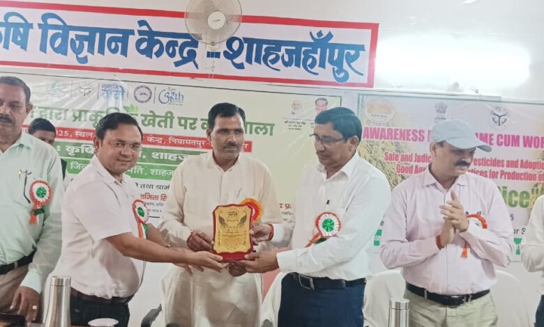 राज्य स्वच्छ गंगा मिशन उत्तर प्रदेश के निर्देशों के क्रम में जिला गंगा समिति, शाहजहाँपुर के बैनर तले कृषि विभाग द्वारा उप कृषि निदेशक पी0के0 मिश्रा की अध्यक्षता में कृषि विज्ञान केन्द्र, नियामतपुर के प्रशिक्षण हॉल में प्राकृतिक कृषि विषयक कार्यशाला आयोजित की गयी। कार्यक्रम का शुभारम्भ मुख्य अतिथि भा.ज.पा. जिलाध्यक्ष के0सी0 मिश्रा एवं उप प्रभागीय वनाधिकारी डॉ0 सुशील कुमार, जिला युवा अधिकारी मयंक भदौरिया, जिला कृषि रक्षा अधिकारी संजय कुमार सहित समस्त अतिथियों ने माँ गंगा एवं माँ सरस्वती के चित्र पर मार्ल्यापण व दीप प्रज्ज्वलन कर लिया। मुख्य अतिथि ने अपने सम्बोधन में माननीय प्रधानमंत्री जी की महत्वकांक्षी परियोजना नमामि गंगे पर प्रकाश डालते हुये केन्द्र सरकार व राज्य सरकार के इस प्रयास को सराहा व गंगा ग्रामों से आये कृषकों की सराहना की। उन्होने कृषकों को प्राकृतिक कृषि की ओर बढ़ने हेतु अभिप्रेरित किया। कार्यक्रम के विशिष्ट अतिथि डॉ॰ एन॰ सी॰ त्रिपाठी प्रभारी अधिकारी के॰ वी॰ के॰ ने कहा कि आज मनुष्य में अनेक प्रकार की बीमारियां हो रही हैं उसके लिए हमारा दूषित खानपान ही है हम अनेक प्रकार के हानिकारक रसायनों के प्रयोग युक्त खाद्य फसलें पैदा कर रहे हैं उसका विकल्प केवल प्राकृतिक खेती है जिसमें गौपालन का महत्वपूर्ण योगदान है हम सब अब प्राकृतिक खेती को अपनाए।डॉ॰ नरेंद्र प्रसाद ने जैविक फसलों के उत्पादन की वैज्ञानिक विधियों पर प्रकाश डाला। डॉ॰ एच॰ एच॰ खान, डॉ॰ विमल कुमार एवं डॉ महेश कुमार ने प्राकृतिक रूप से तैयार होने वाले उर्वरकों एवं कीटनाशकों के बारे में विस्तार से बताया। जिला परियोजना अधिकारी (नमामि गंगे) डॉ0 विनय कुमार सक्सेना ने नमामि गंगे की इस पहल को निर्मल व अर्थ गंगा का अभिन्न अंग बताया। प्रगतिशील कृषक एवं गंगा भूमि फार्मर प्रोड्यूसर कम्पनी के एम॰ ड॰ी राकेश कुमार पांडेय ने गौ आधारित प्राकृतिक खेती के अपने अनुभव साझा किए और किसानों से कहा कि गौ आधारित खेती में हमारी लागत शून्य से लेकर न्यूनतम होती है परन्तु खाद्य फसलें हमारी उच्च गुणवत्ता वाली पैदा होती हैं जो रोगों से लड़ने की शक्ति के साथ ही शरीर को स्वस्थ बनाती हैं।गंगा ग्राम एत्मादपुर चक ने एल0आर0पी0 राजेश सक्सेना ने अपनी टीम अशोक, संदीप कुमार, कौशल आदि के साथ गौ मूत्र, बेसन, गुड़ आदि की मदद से जीवामृत बनाकर भी दिखाया तथा उपयोग करने के तरीकों से अवगत कराया।बासमती निर्यात निगम मेरठ से आए एपिडा के प्रभारी अधिकारी डॉ नेत्र पाल शर्मा जी ने बासमती उत्पादन की वैज्ञानिक विधियों के साथ प्राकृतिक रूप से बासमती उत्पादन करने की किसानों को सलाह दी साथ ही बासमती के निर्यात के बारे में विस्तार से बताएं। इस अवसर पर 