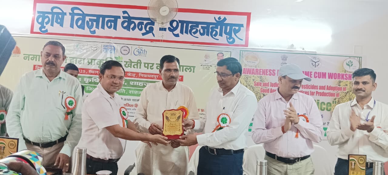 राज्य स्वच्छ गंगा मिशन उत्तर प्रदेश के निर्देशों के क्रम में जिला गंगा समिति, शाहजहाँपुर के बैनर तले कृषि विभाग द्वारा उप कृषि निदेशक पी0के0 मिश्रा की अध्यक्षता में कृषि विज्ञान केन्द्र, नियामतपुर के प्रशिक्षण हॉल में प्राकृतिक कृषि विषयक कार्यशाला आयोजित की गयी। कार्यक्रम का शुभारम्भ मुख्य अतिथि भा.ज.पा. जिलाध्यक्ष के0सी0 मिश्रा एवं उप प्रभागीय वनाधिकारी डॉ0 सुशील कुमार, जिला युवा अधिकारी मयंक भदौरिया, जिला कृषि रक्षा अधिकारी संजय कुमार सहित समस्त अतिथियों ने माँ गंगा एवं माँ सरस्वती के चित्र पर मार्ल्यापण व दीप प्रज्ज्वलन कर लिया। मुख्य अतिथि ने अपने सम्बोधन में माननीय प्रधानमंत्री जी की महत्वकांक्षी परियोजना नमामि गंगे पर प्रकाश डालते हुये केन्द्र सरकार व राज्य सरकार के इस प्रयास को सराहा व गंगा ग्रामों से आये कृषकों की सराहना की। उन्होने कृषकों को प्राकृतिक कृषि की ओर बढ़ने हेतु अभिप्रेरित किया। कार्यक्रम के विशिष्ट अतिथि डॉ॰ एन॰ सी॰ त्रिपाठी प्रभारी अधिकारी के॰ वी॰ के॰ ने कहा कि आज मनुष्य में अनेक प्रकार की बीमारियां हो रही हैं उसके लिए हमारा दूषित खानपान ही है हम अनेक प्रकार के हानिकारक रसायनों के प्रयोग युक्त खाद्य फसलें पैदा कर रहे हैं उसका विकल्प केवल प्राकृतिक खेती है जिसमें गौपालन का महत्वपूर्ण योगदान है हम सब अब प्राकृतिक खेती को अपनाए।डॉ॰ नरेंद्र प्रसाद ने जैविक फसलों के उत्पादन की वैज्ञानिक विधियों पर प्रकाश डाला। डॉ॰ एच॰ एच॰ खान, डॉ॰ विमल कुमार एवं डॉ महेश कुमार ने प्राकृतिक रूप से तैयार होने वाले उर्वरकों एवं कीटनाशकों के बारे में विस्तार से बताया। जिला परियोजना अधिकारी (नमामि गंगे) डॉ0 विनय कुमार सक्सेना ने नमामि गंगे की इस पहल को निर्मल व अर्थ गंगा का अभिन्न अंग बताया। प्रगतिशील कृषक एवं गंगा भूमि फार्मर प्रोड्यूसर कम्पनी के एम॰ ड॰ी राकेश कुमार पांडेय ने गौ आधारित प्राकृतिक खेती के अपने अनुभव साझा किए और किसानों से कहा कि गौ आधारित खेती में हमारी लागत शून्य से लेकर न्यूनतम होती है परन्तु खाद्य फसलें हमारी उच्च गुणवत्ता वाली पैदा होती हैं जो रोगों से लड़ने की शक्ति के साथ ही शरीर को स्वस्थ बनाती हैं।गंगा ग्राम एत्मादपुर चक ने एल0आर0पी0 राजेश सक्सेना ने अपनी टीम अशोक, संदीप कुमार, कौशल आदि के साथ गौ मूत्र, बेसन, गुड़ आदि की मदद से जीवामृत बनाकर भी दिखाया तथा उपयोग करने के तरीकों से अवगत कराया।बासमती निर्यात निगम मेरठ से आए एपिडा के प्रभारी अधिकारी डॉ नेत्र पाल शर्मा जी ने बासमती उत्पादन की वैज्ञानिक विधियों के साथ प्राकृतिक रूप से बासमती उत्पादन करने की किसानों को सलाह दी साथ ही बासमती के निर्यात के बारे में विस्तार से बताएं। इस अवसर पर 