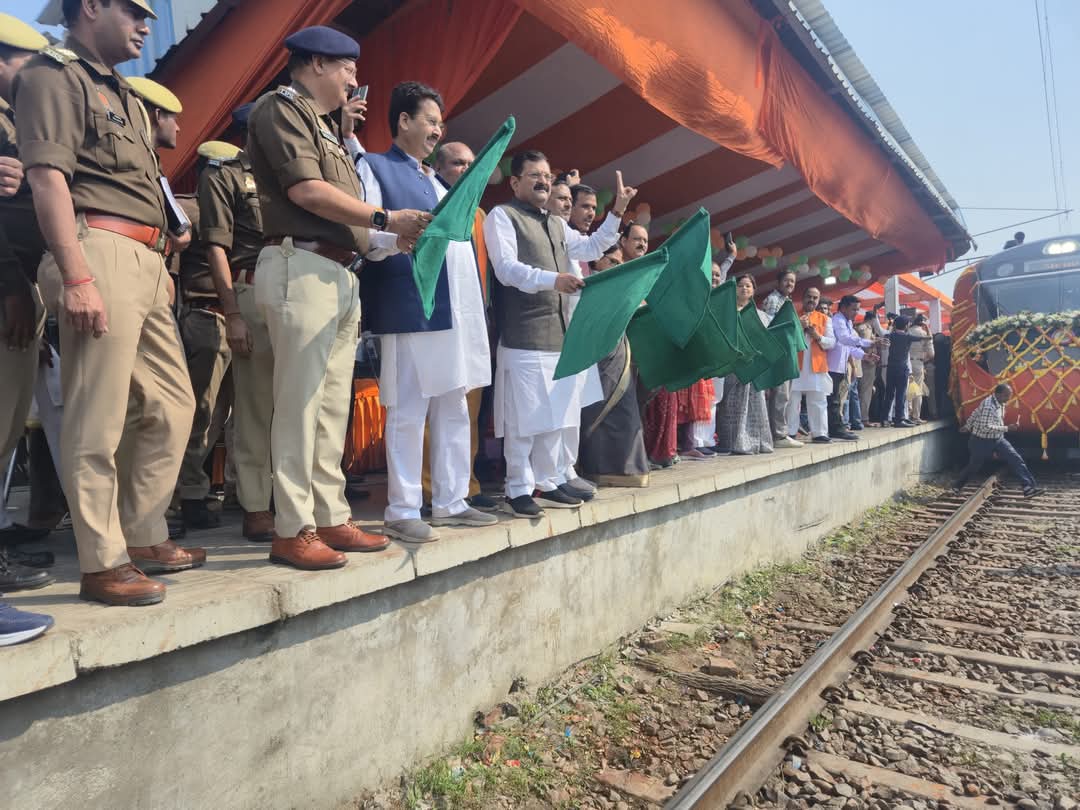 जनप्रतिनिधियों ने हरी झंडी दिखाकर वन्दे भारत ट्रेन को रवाना किया