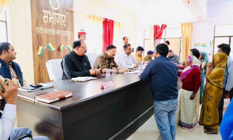 शाहजहांपुर आज दिनांक 15.11.25 को तहसील जलालाबाद में “सम्पूर्ण समाधान दिवस” का आयोजन किया गया । इस अवसर पर जिलाधिकारी धर्मेंद्र प्रताप सिंह पुलिस अधीक्षक राजेश द्विवेदी द्वारा जनता की समस्याओं को गंभीरता से सुना गया ।समाधान दिवस में जिलाधिकारी के आने के कारण दूरदराज से आए बड़ी संख्या में क्षेत्रवासी उपस्थित हुए और अपनी-अपनी समस्याओं से संबंधित प्रार्थना-पत्र प्रस्तुत किए। जिलाधिकारी एवं पुलिस अधीक्षक द्वारा सभी प्रार्थना-पत्रों का गहनता से अवलोकन कर संबंधित विभागीय अधिकारियों को गुणवत्तापूर्ण एवं समयबद्ध निस्तारण सुनिश्चित करने के निर्देश दिए ।जिलाधिकारी द्बारा स्पष्ट किया गया कि शासन की प्राथमिकता जनसामान्य की समस्याओं का त्वरित समाधान है। जनता को आश्वस्त किया कि प्रत्येक शिकायत का निष्पक्ष व प्रभावी निस्तारण किया जाएगा तथा किसी भी स्तर पर शिथिलता बर्दाश्त नहीं की जाएगी।इस अवसर पर क्षेत्राधिकारी अजय कुमार राय जलालाबाद मुख्य चिकित्सा अधिकारी डॉ विवेक मिश्रा उपजिलाधिकारी प्रभात राय सहित राजस्व, पुलिस व स्वास्थ्य विभाग के अन्य अधिकारीगण भी उपस्थित रहे।