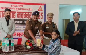 शाहजहांपुर।नगर पंचायत निगोही स्थित एस.के. पब्लिक स्कूल में आज यातायात सुरक्षा जागरूकता कार्यक्रम का आयोजन किया गया। कार्यक्रम का शुभारंभ मुख्य अतिथि सीओ ट्रैफिक श्री संजय कुमार सिंह द्वारा दीप प्रज्वलित कर किया गया।कार्यक्रम के दौरान सिंह ने विद्यार्थियों एवं शिक्षकों को सड़क सुरक्षा से जुड़े महत्वपूर्ण नियमों की जानकारी दी तथा सभी से अपील की कि वे स्वयं नियमों का पालन करें और अपने अभिभावकों को भी इसके लिए प्रेरित करें।इस अवसर पर विद्यालय के विद्यार्थियों द्वारा बनाए गए यातायात मॉडल, पोस्टर, चार्ट एवं प्रस्तुतीकरण का अवलोकन मुख्य अतिथि एवं विद्यालय प्रबंधन द्वारा किया गया। विद्यार्थियों ने अपने विचार व्यक्त करते हुए सड़क सुरक्षा को दैनिक जीवन में अपनाने का संकल्प लिया।कक्षा एनसी और केजी के छोटे बच्चों ने ट्रैफिक लाइट बनकर सभी को उसके संकेतों के बारे में रोचक तरीके से जानकारी दी, जिसे सभी ने सराहा।कार्यक्रम में यातायात विषयक क्विज प्रतियोगिता का भी आयोजन किया गया।इसी बीच प्रभारी यातायात शाहजहांपुर विनय कुमार पांडेय जी ने सभी बच्चो को सम्बोधित करते हुए कहा कि सड़क पर सुरक्षित चलना तथा दूसरों को भी सुरक्षित रखना यह हमारी नैतिक जिम्मेदारी है। उन्होंने बच्चो से अपील की कि वे अपने अभिभावकों तथा रिस्तेदारो से यातायात नियमो का पालन अवश्य करवाये और कम से कम रोज पांच लोगों को अवश्य जागरूक करें। कक्षा यूकेजी के छात्र हृदय का यातायात नियमो के प्रति जागरूकता से गदगद होकर यातायात प्रभारी श्री पांडेय ने अपनी कैप पहनकर सम्मानित किया।प्रतियोगिता में प्रथम, द्वितीय और तृतीय स्थान प्राप्त करने वाले विद्यार्थियों को पुरस्कृत किया गया। साथ ही जिन छात्रों के पोस्टर और विचार उत्कृष्ट रहे, उन्हें भी सम्मानित किया गया।कार्यक्रम में विद्यालय प्रबन्धक अतहर मोहम्मद एवं प्रधानाचार्य सौरभ कुमार शर्मा ने मुख्य अतिथि एवं विशिष्ट अतिथियों को शॉल एवं प्रतीक चिन्ह भेंटकर सम्मानित किया।अंत मे प्रधानाचार्य सौरभ कुमार शर्मा ने कार्यक्रम में उपस्थित सम्मानित अतिथियो का आभार व्यक्त किया।कार्यक्रम का संचालन अध्यापिका शिप्रा सिंह एवं यूसरा खान ने किया।इस अवसर पर निगोही थाना प्रभारी अशोक कुमार सिंह मय स्टॉफ, टीचर प्रगति दीक्षित, तबस्सुम खान, कंचन सिंह, वर्तिका सक्सेना, तोशिना दीक्षित, प्रिय सक्सेना, उरूज़ शारिक, तालिब खान, कपिल सिंह आदि उपस्थित रहे ।