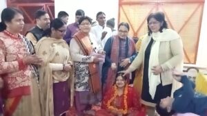 पुवायां,शाहजहांपुर।गायत्री परिवार का मासिक दीप यज्ञ कार्यक्रम स्थानीय गायत्री चेतना केंद्र पर संपन्न हुआ।आश्रम से जुड़ी साधक और भाजपा नगर अध्यक्ष (महिला मोर्चा )आभा गुप्ता ने बताया कि गायत्री परिवार के मुख्यालय के निर्देशानुसार दीपयज्ञ कार्यक्रम प्रत्येक मास की पूर्णिमा को आयोजित किया जाता है।दीपयज्ञ कार्यक्रम में जिस भी साधक का जन्म दिवस पड़ता है उसका कार्यक्रम भी दीप यज्ञ कार्यक्रम में धूमधाम से मनाया जाता है। इस बार आश्रम से जुड़ी साधक प्रीति गुप्ता का जन्मदिन मनाया गया।आश्रम से जुड़े सड़क राकेश चंद्र गुप्ता और प्रमोद चंद्र गुप्ता ने संयुक्त रूप से बताया कि मां गायत्री आदिशक्ति हैं उनकी आराधना करने से समस्त लौकिक और पारलौकिक सुखों की प्राप्ति होती है। उन्होंने बताया कि शीघ्र ही गायत्री चेतना केंद्र पर शिवालय का भी निर्माण कराया जाएगा जिसमें आदिशक्ति मां गायत्री और भगवान भोलेनाथ विराजमान होंगे। प्रत्येक माह होने वाले कार्यक्रम में श्रद्धालुओं ने भारी संख्या में दीपक कार्यक्रम और आरती के उपरांत भोजन प्रसाद ग्रहण किया।इस अवसर पर प्रभारी प्रमोद चंद्रगुप्त राकेश चंद्र गुप्ता, डॉ प्रदीप कटियार,आभा गुप्ता ,मीना गुप्ता, एकता दिलीप भारद्वाज, प्रमोद राठौर कमलेश गुप्ता, रामवीर, ज्ञान देवी , डॉ प्रदीप वैरागी आदि उपस्थित रहे।