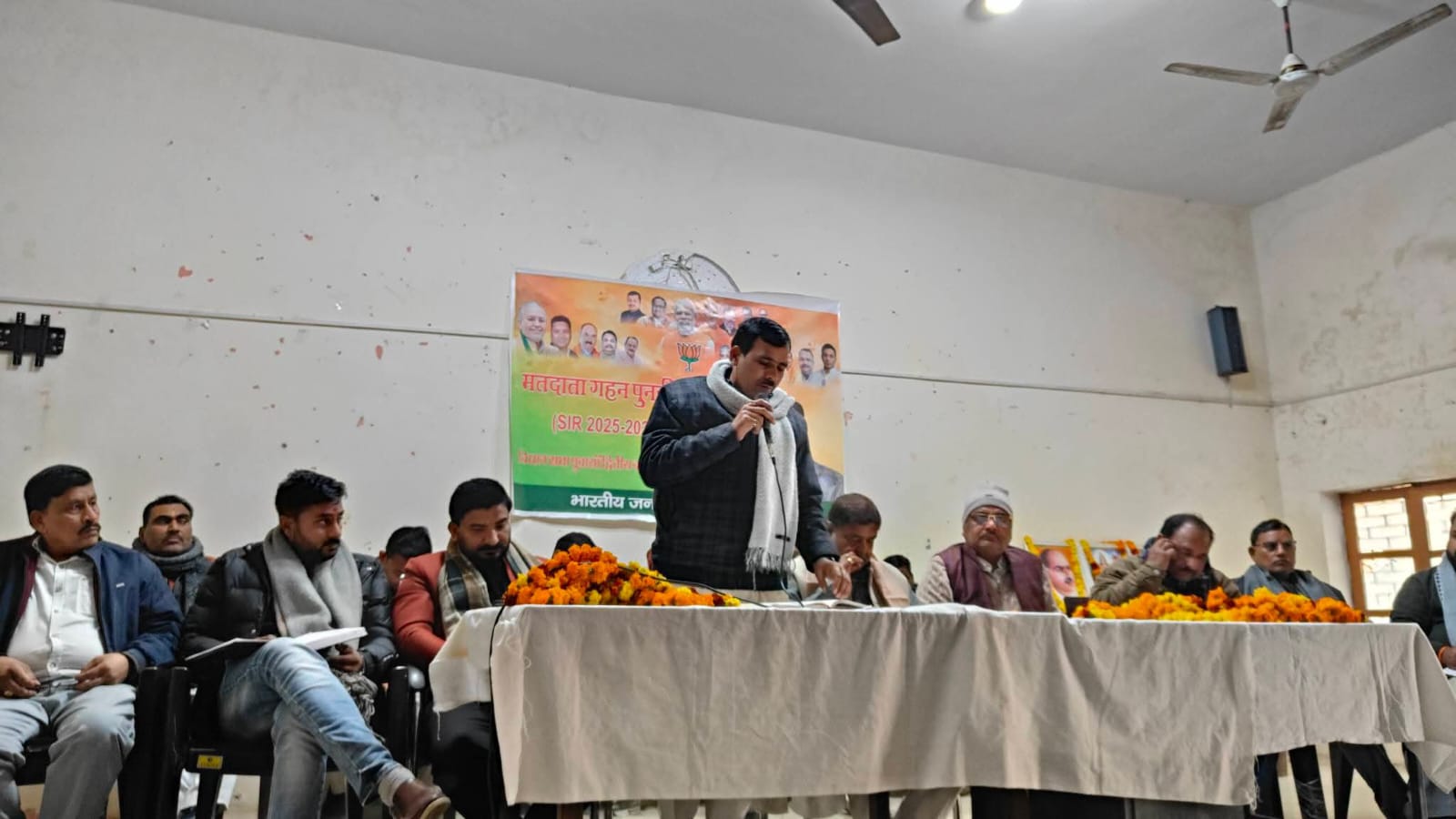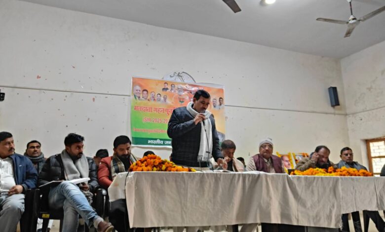 पुवायां,शाहजहांपुर।मतदाता गहन पुनरीक्षण एस आई आर 2025 अभियान के द्वितीय चरण के अंतर्गत पुवायां विधानसभा की कार्यशाला ब्लॉक सभागार में संपन्न हुई। जिला अध्यक्ष कृष्णचंद मिश्रा के नेतृत्व में संपन्न कार्यशाला में मुख्य अतिथि भाजपा जिला महामंत्री अनिल गुप्ता ने कार्यकर्ताओं का मार्गदर्शन किया।