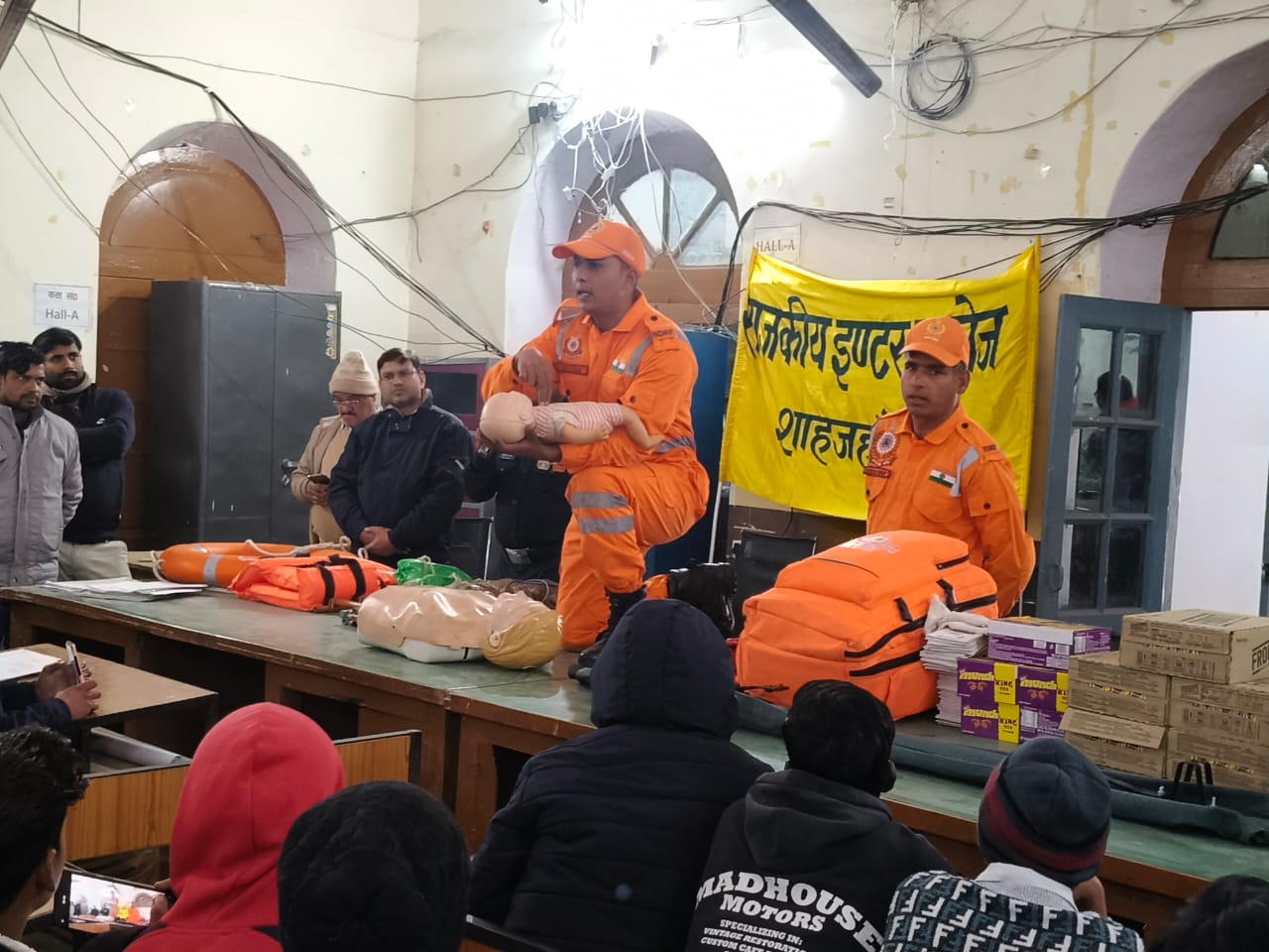 शाहजहांपुर | 09 जनवरी 2026 जिलाधिकारी शाहजहांपुर के निर्देशन में जिला आपदा प्रबंधन प्राधिकरण (DDMA) के समन्वय से आज जनपद के दो प्रमुख शिक्षण संस्थानों— राजकीय इंटर कॉलेज (खिरनीबाग) और राजकीय कन्या इंटर कॉलेज (शाहजहांपुर) में आपदा प्रबंधन एवं जागरूकता शिविर का सफल आयोजन किया गया।इस विशेष प्रशिक्षण कार्यक्रम में राष्ट्रीय आपदा मोचन बल (NDRF) की टीम द्वारा छात्र-छात्राओं को प्राकृतिक और मानव निर्मित आपदाओं के समय त्वरित बचाव और सुरक्षा के उपायों के बारे में विस्तार से प्रशिक्षित किया गया।