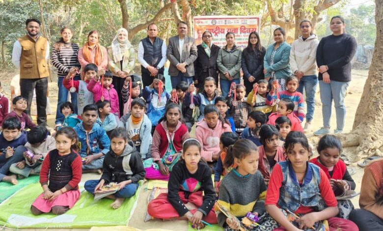 मेरा युवा भारत द्वारा राष्ट्रीय युवा दिवस पर मलिन बस्ती में खेल प्रतियोगिता का आयोजन।