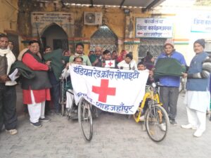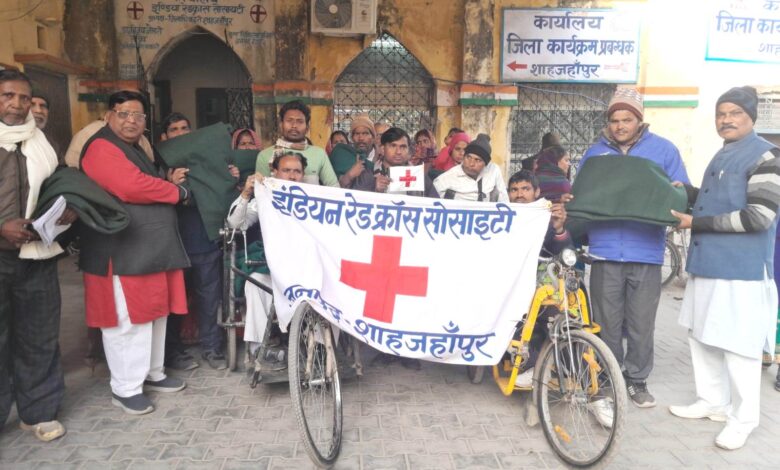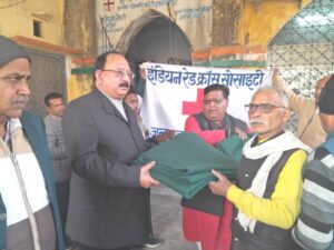 रेडक्रास द्वारा 200 दिव्यांगजनों एवं विधवा महिलाओं को कम्बल का वितरण।
