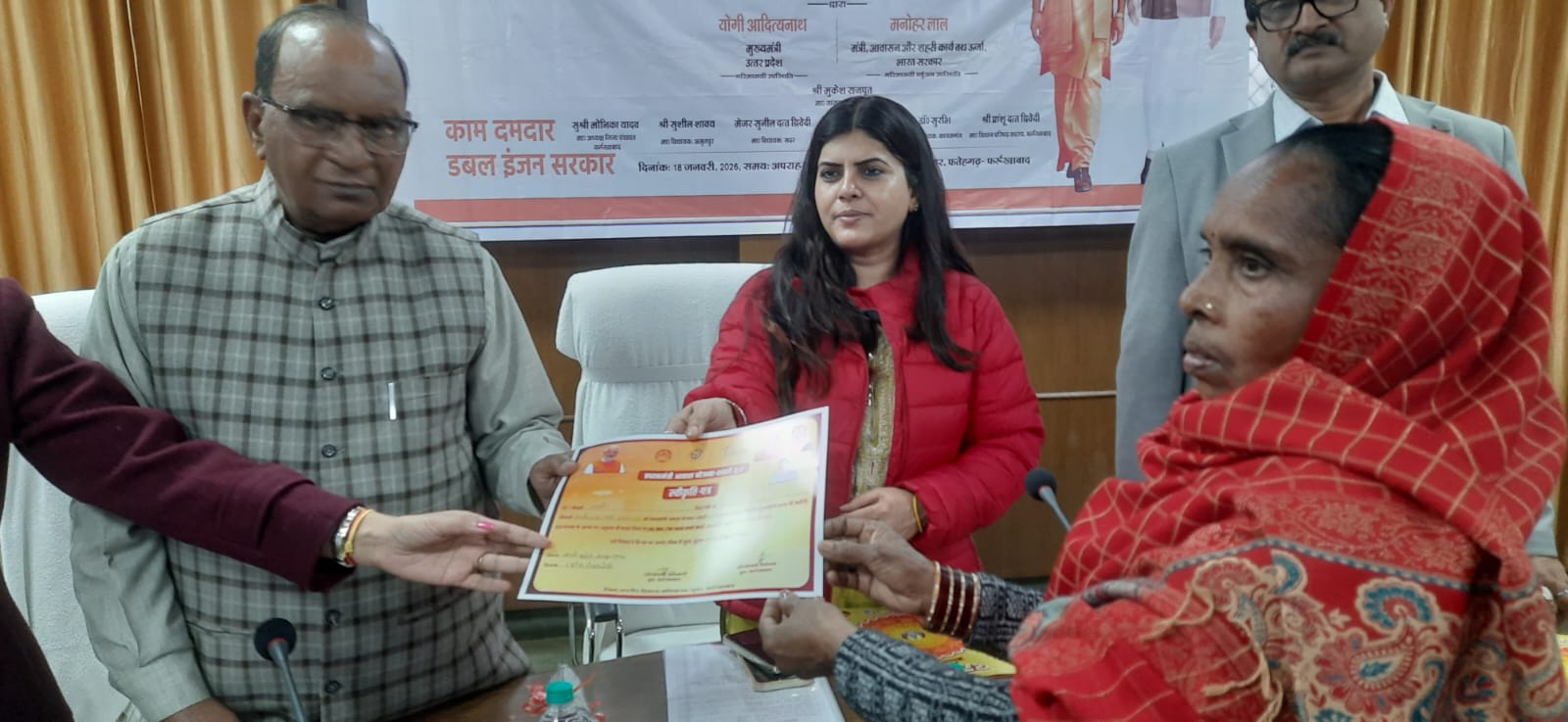 कार्यक्रम में सर्वप्रथम दूरदर्शन पर लखनऊ से मुख्यमंत्री द्वारा इस कार्यक्रम के उद्घाटन का दूरदर्शन पर सजीव प्रसारण किया गया जो कलेक्ट्रेट में उपस्थित जनप्रतिनिधियों व जिलाधिकारी और सभी लाभार्थियों ने देखा तत्पश्चात जनपद की कुसमा देवी ग्वालटोली शिवानी बीबीगंज तथा शोभा देवी नगला दीना भोलेपुर आदि लाभार्थियों को प्रमाण पत्र दिए गए कलेक्ट्रेट सभागार में उपस्थित अनेक लाभार्थियों को प्रमाण पत्र दिए गए और उनके खाते में ₹100000 की प्रथम किस्त भेजी गई ताकि वह अपने आवास का निर्माण कर सकें अपने आवास का 75% निर्माण होने के पश्चात उन्हें फिर एक लाख रुपए की किस्त दी जाएगी इसके बाद 75% निर्माण पुनः पूर्ण हो जाने के पश्चात उन्हें ₹50000 की तीसरी किस्त दी जाएगी इस प्रकार प्रत्येक लाभार्थी को कुल ढाई लाख रुपए दिए जाएंगे इस योजना की शुरुआत 1 सितंबर 2024 से हुई है अगले 5 वर्षों अर्थात् सन् 2029तक के लिए शहरी गरीबों और निम्न मध्यम आय के परिवारों को आवास उपलब्ध कराने की योजना है आवास बनाने हेतु 250000 रुपए अनुदान राशि के रूप में लाभार्थी को उपलब्ध कराए जाएंगे जिसमें प्रथम किस्त 1 लाख दूसरी किस्त₹100000 ब तीसरी किस्त ₹50000 नियमानुसार दी जाएगी आज दिनांक 18/ 1/ 2026 को उत्तर प्रदेश के मुख्यमंत्री द्वारा लाभार्थियों के खाते में सिंगल क्लिक के माध्यम से सीधे प्रथम किश्त निर्गत की गई इस योजना में फर्रुखाबाद के 3236 लाभार्थियों को प्रथम किश्त निर्गत की गई प्रधानमंत्री आवास योजना शहरी के पहले चरण में जनपद फर्रुखाबाद के 11514 लाभार्थियों को पक्का आवास मिल चुका है फर्रुखाबाद के लाभार्थी है 804 कायमगंज के 93 कमालगंज के 96 कपिल के 45 खिमसेपुर के 583 मोहम्मदाबाद के 235 नवाबगंज के 571 संकिसा के 381 शमशाबाद के 428 इस प्रकार सभागार में उपस्थित सभी लाभार्थियों को जनप्रतिनिधियों ने प्रमाण पत्र वितरित किये।