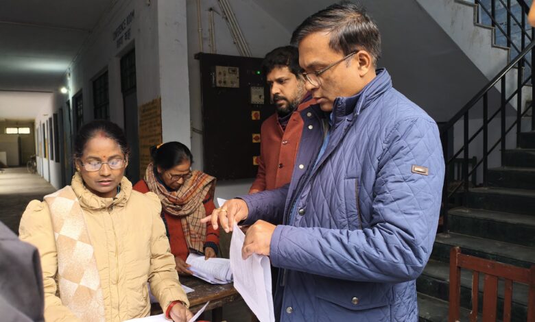 शाहजहांपुर 31 जनवरी । जिला निर्वाचन अधिकारी /जिलाधिकारी धर्मेंद्र प्रताप सिंह ने निर्वाचक नामावलियों का विशेष प्रगाढ़ पुरीक्षण अभियान के अन्तर्गत डॉ0 सुदामा प्रसाद कन्या इंटर कॉलेज में बूथों का निरीक्षण किया तथा प्राप्त फार्म 6 का अवलोकन किया। प्राप्त फर्मों का गहन निरीक्षण कर उन्होंने बीएलओ को निर्देश दिए कि फार्म में मतदाता का अंग्रेजी एवं हिंदी के नाम भरने में विशेष ध्यान दिया जाए जिससे फार्म में कोई त्रुटि न हो। फॉर्म भरने के उपरांत उसे अच्छी तरह जांच लें। उन्होंने बताया कि 18 वर्ष आयु पूर्ण करने वाले सभी लोग फार्म 6 भरकर कर जमा करें जिससे वोटर लिस्ट में नाम शामिल हो सके।जिला निर्वाचन अधिकारी ने कहा कि भारत निर्वाचन आयोेग के निर्देशानुसार विशेष प्रगाढ़ पुरीक्षण अभियान चलाया जा रहा है इसमें किसी भी पात्र व्यक्ति का नाम वोटर लिस्ट में छूटने न पाये। अर्हता तिथि 01.01.2026 के आधार पर विधानसभा निर्वाचन क्षेत्रों की निर्वाचक नामावलियों के विशेष प्रगाढ़ पुनरीक्षण-2026 के अन्तर्गत विशेष अभियान दिवस दिनांक 31.01.2026 को जनपद की समस्त 06 विधानसभा निर्वाचन क्षेत्रों के सभी मतदेय स्थलों पर बी०एल०ओ० द्वारा जनसामान्य से दावे/आपत्तियां प्राप्त किये जाने का कार्य किया गया। विशेष अभियान दिवस में जउप जिला निर्वाचन अधिकारी /निर्वाचक रजिस्ट्रीकरण अधिकारियों तथा बी०एल०ओ० सुपरवाइजर्स द्वारा मतदेय स्थलों का भ्रमण किया गया।इस अवसर नगर मजिस्ट्रेट प्रवेंद्र कुमार सहित अन्य अधिकारी मौजूद रहे।