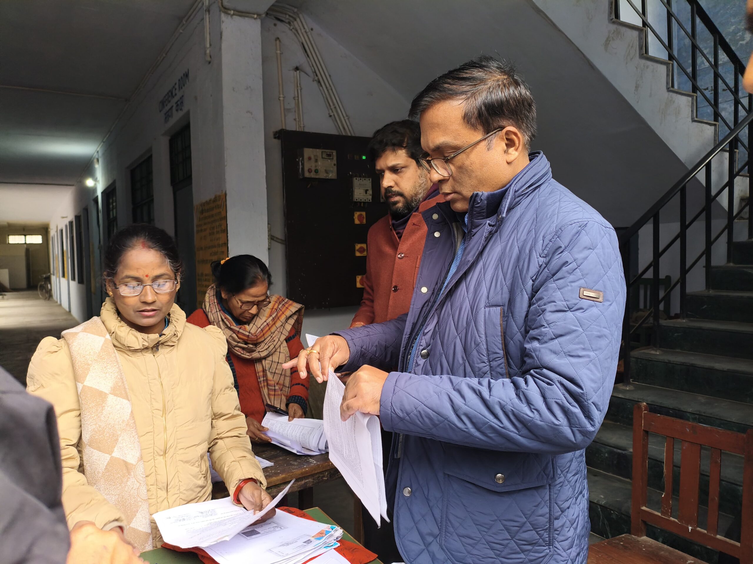 शाहजहांपुर 31 जनवरी । जिला निर्वाचन अधिकारी /जिलाधिकारी धर्मेंद्र प्रताप सिंह ने निर्वाचक नामावलियों का विशेष प्रगाढ़ पुरीक्षण अभियान के अन्तर्गत डॉ0 सुदामा प्रसाद कन्या इंटर कॉलेज में बूथों का निरीक्षण किया तथा प्राप्त फार्म 6 का अवलोकन किया। प्राप्त फर्मों का गहन निरीक्षण कर उन्होंने बीएलओ को निर्देश दिए कि फार्म में मतदाता का अंग्रेजी एवं हिंदी के नाम भरने में विशेष ध्यान दिया जाए जिससे फार्म में कोई त्रुटि न हो। फॉर्म भरने के उपरांत उसे अच्छी तरह जांच लें। उन्होंने बताया कि 18 वर्ष आयु पूर्ण करने वाले सभी लोग फार्म 6 भरकर कर जमा करें जिससे वोटर लिस्ट में नाम शामिल हो सके।जिला निर्वाचन अधिकारी ने कहा कि भारत निर्वाचन आयोेग के निर्देशानुसार विशेष प्रगाढ़ पुरीक्षण अभियान चलाया जा रहा है इसमें किसी भी पात्र व्यक्ति का नाम वोटर लिस्ट में छूटने न पाये। अर्हता तिथि 01.01.2026 के आधार पर विधानसभा निर्वाचन क्षेत्रों की निर्वाचक नामावलियों के विशेष प्रगाढ़ पुनरीक्षण-2026 के अन्तर्गत विशेष अभियान दिवस दिनांक 31.01.2026 को जनपद की समस्त 06 विधानसभा निर्वाचन क्षेत्रों के सभी मतदेय स्थलों पर बी०एल०ओ० द्वारा जनसामान्य से दावे/आपत्तियां प्राप्त किये जाने का कार्य किया गया। विशेष अभियान दिवस में जउप जिला निर्वाचन अधिकारी /निर्वाचक रजिस्ट्रीकरण अधिकारियों तथा बी०एल०ओ० सुपरवाइजर्स द्वारा मतदेय स्थलों का भ्रमण किया गया।इस अवसर नगर मजिस्ट्रेट प्रवेंद्र कुमार सहित अन्य अधिकारी मौजूद रहे।